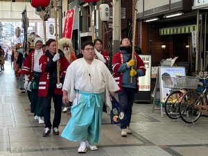 「大阪天満宮 えびす祭 招福行列」の警備業務に従事しました。北新地→大阪天満宮→北新地 巡行警備